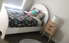 The room is on the smaller side but it has a beautiful mirrored wardrobe and nice carpet.